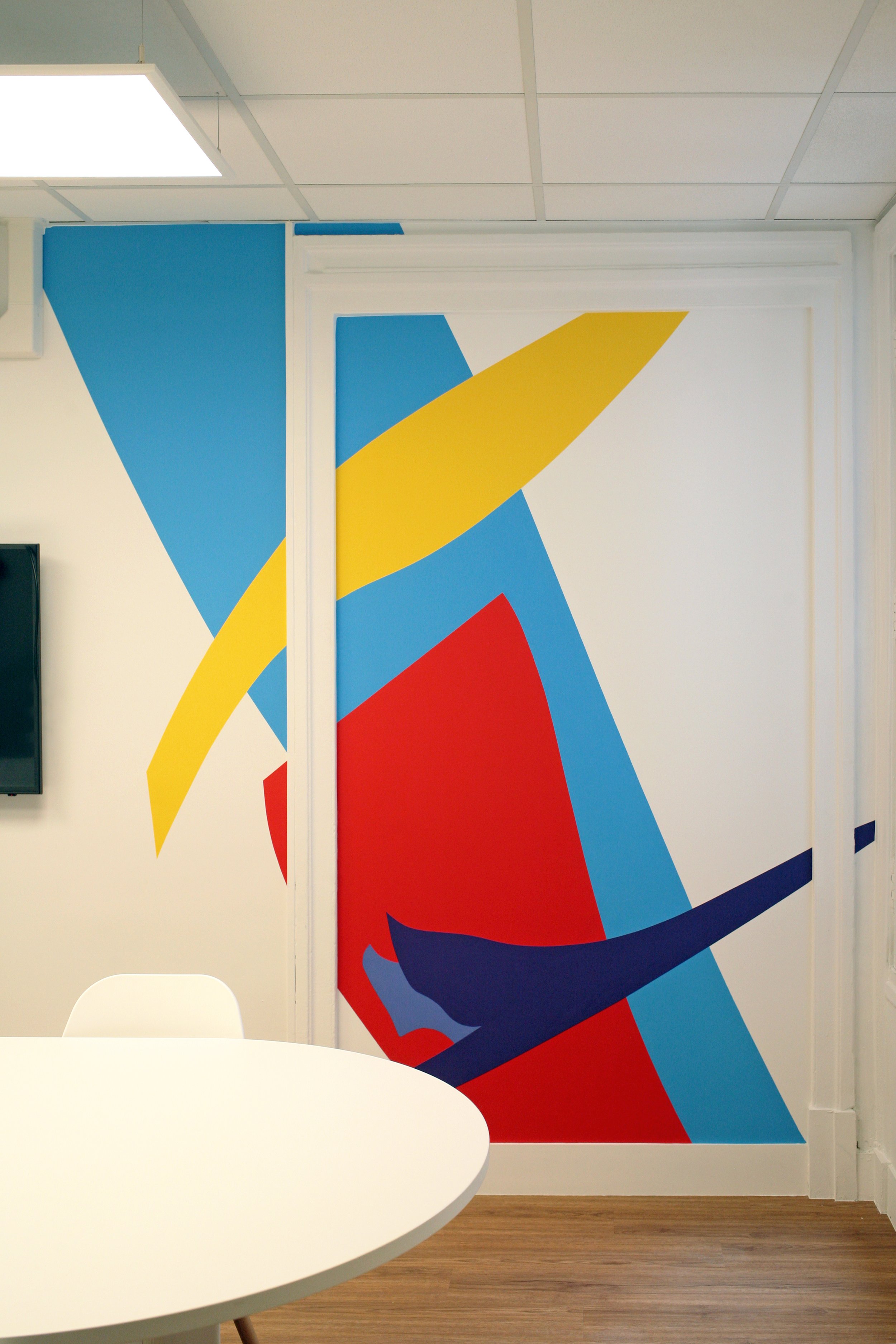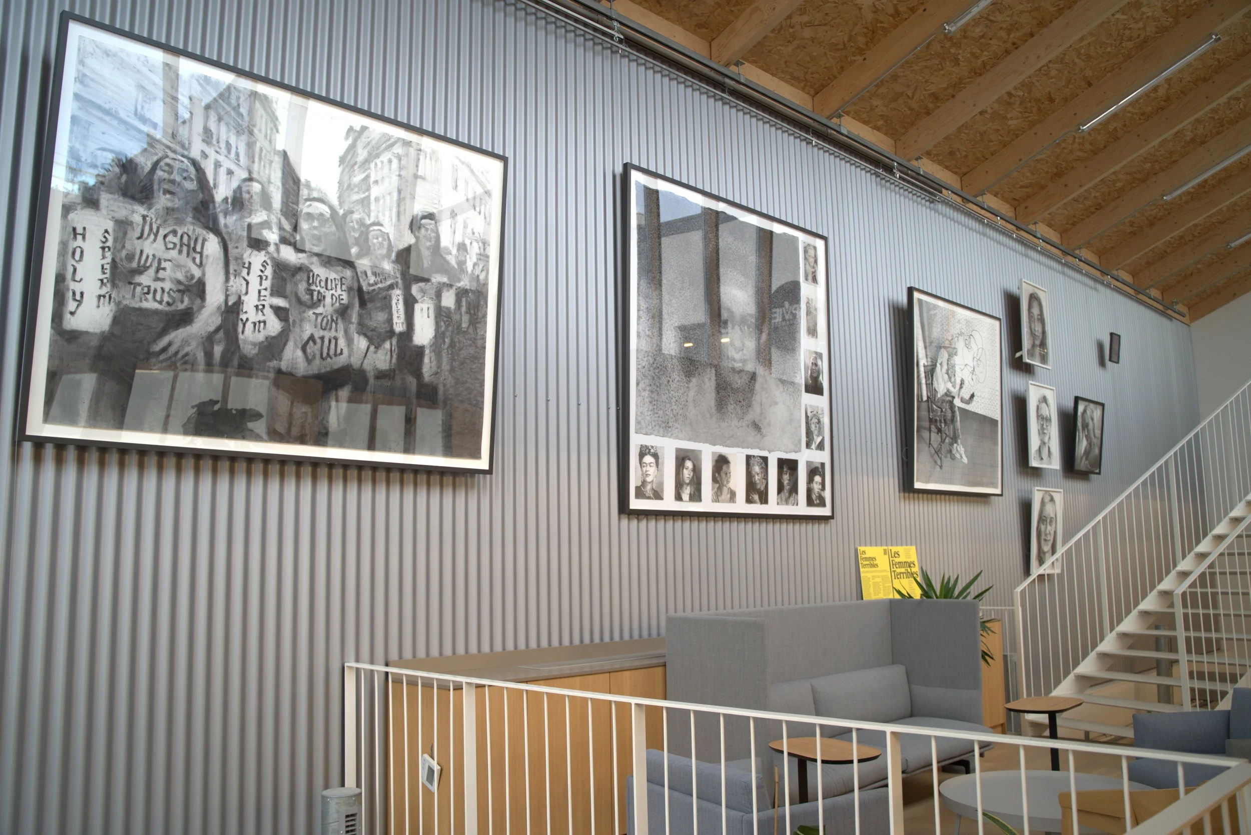 >> Implication des coworkers dans la sélection de l'artiste en résidence pour la réalisation de deux œuvres murales. >> Involvement of the coworkers in the selection of the artist in residence to design two mural artworks.